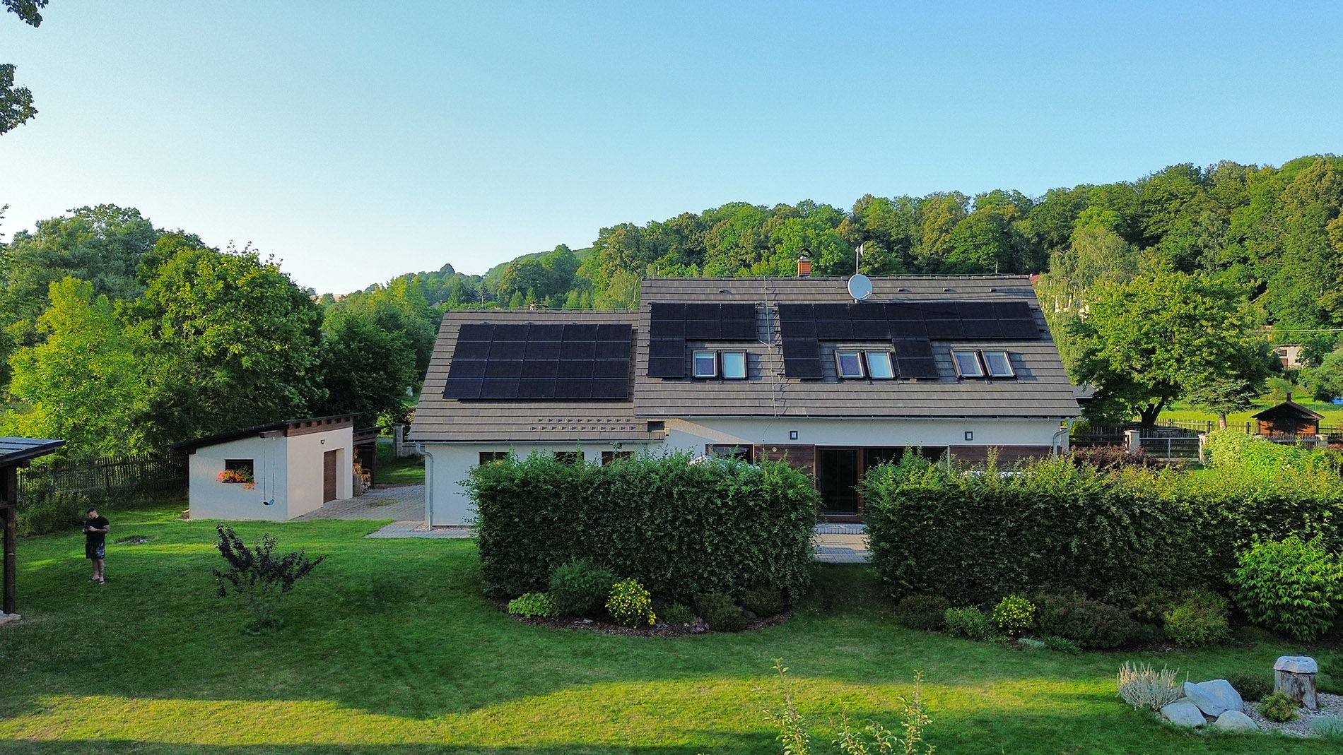 Fotovoltaická elektrárna 9,43 kWp s bateriovým úložištěm 10,24 kWh + 11 kW dobíjecí stanice Thor